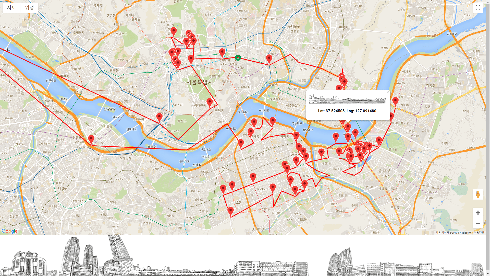 Moving on to the technical part, the Google Maps API is based on a web language. To run it, I had to program using HTML5, CSS6, and JavaScript. Last year’s WebContext project helped. The help material for the Google Maps API was also very helpful. From using the Maps API to drawing a specific location coordinate, connecting the location coordinates with a line, and animating it inside.